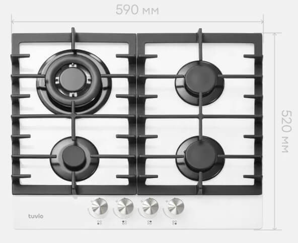 Tuvio HGS63DWGA1 — это встраиваемая газовая варочная панель общей мощностью 8100 Вт. Вместительная и универсальная — 60 см в ширину — легко вписывается в любую кухню.
