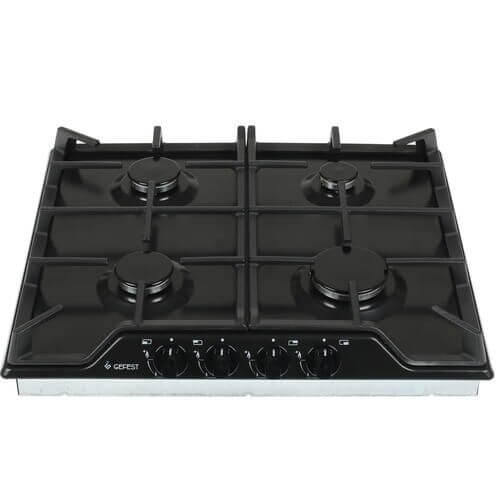 Независимая встраиваемая газовая панель Gefest ПВГ 1212-02 К2 представлена в черном цвете с матовой поверхностью без рамок.